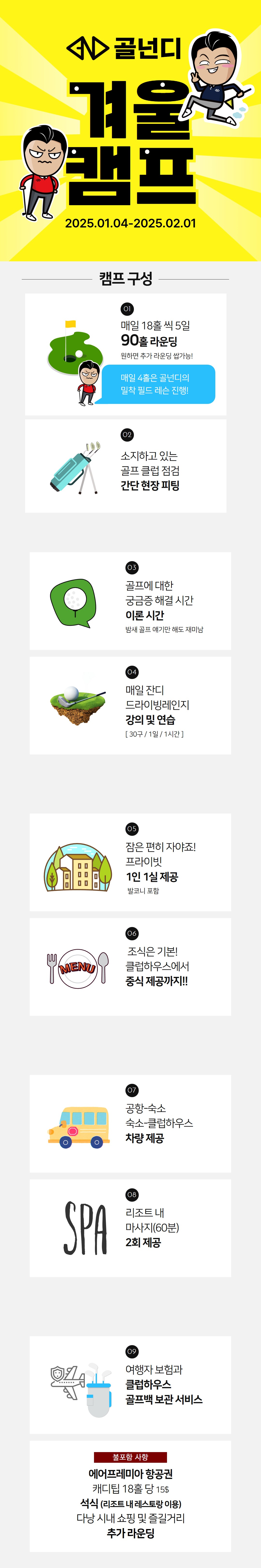 - 촬영팀과 함께 하는 일정 (캠프 전 후 스윙 비교 영상 제공)
